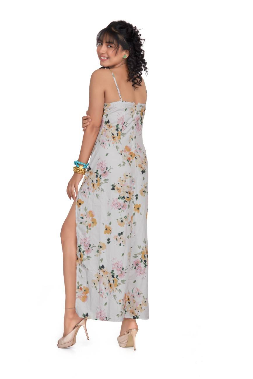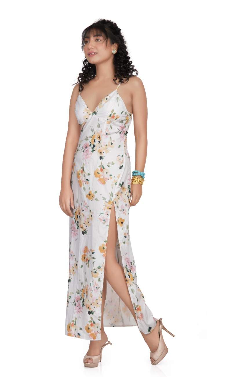 Floral print high slit vacation maxi dress