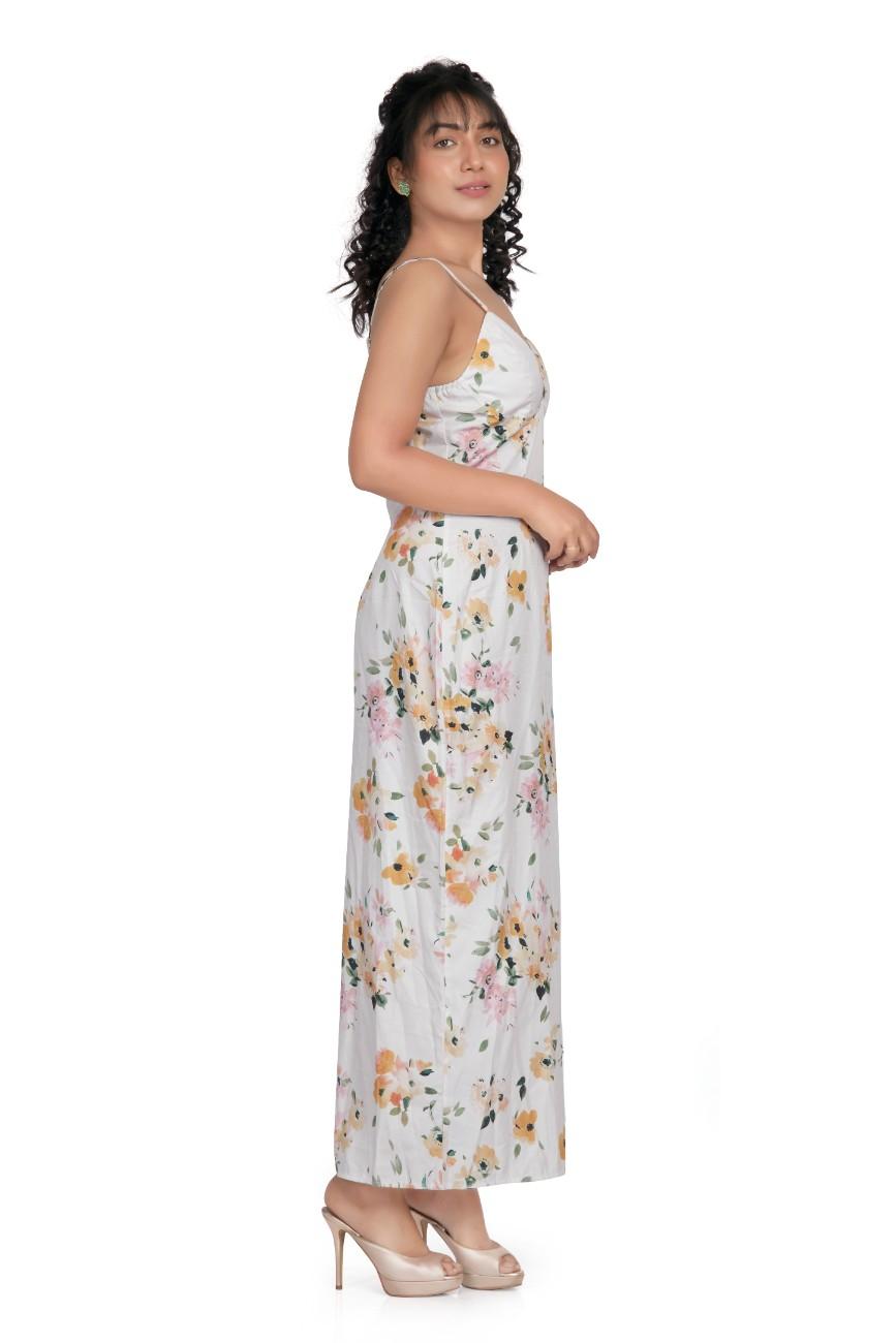 Floral printed shoulder strap top with maxi skirt co-ord set