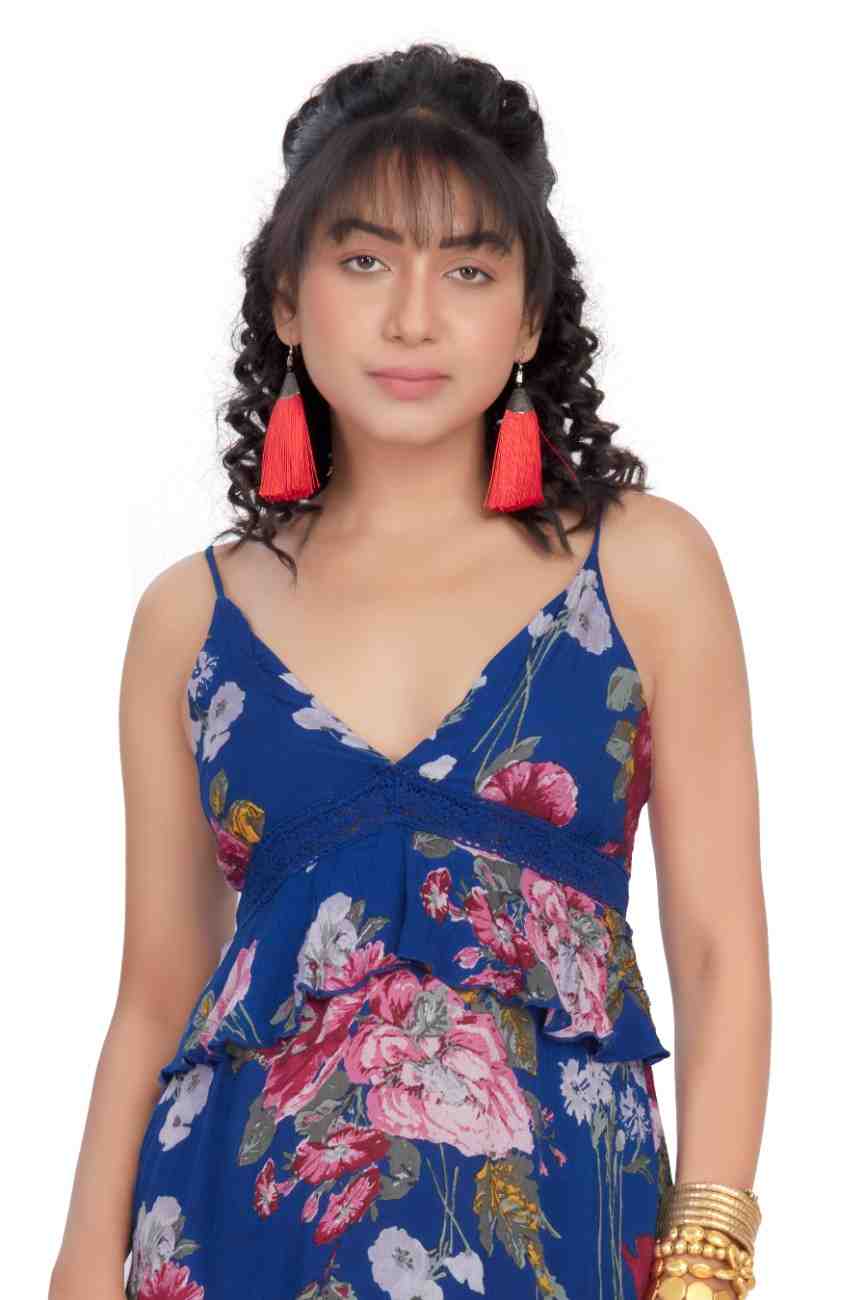 Floral printed shoulder strap top with maxi skirt co-ord set